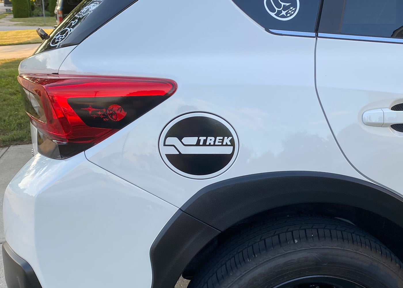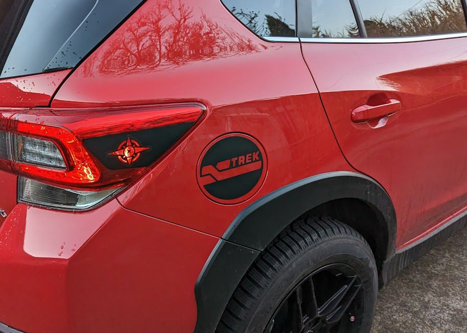 The 'XTREK' gas cover decal is a sleek and stylish accent designed specifically for Crosstrek owners.