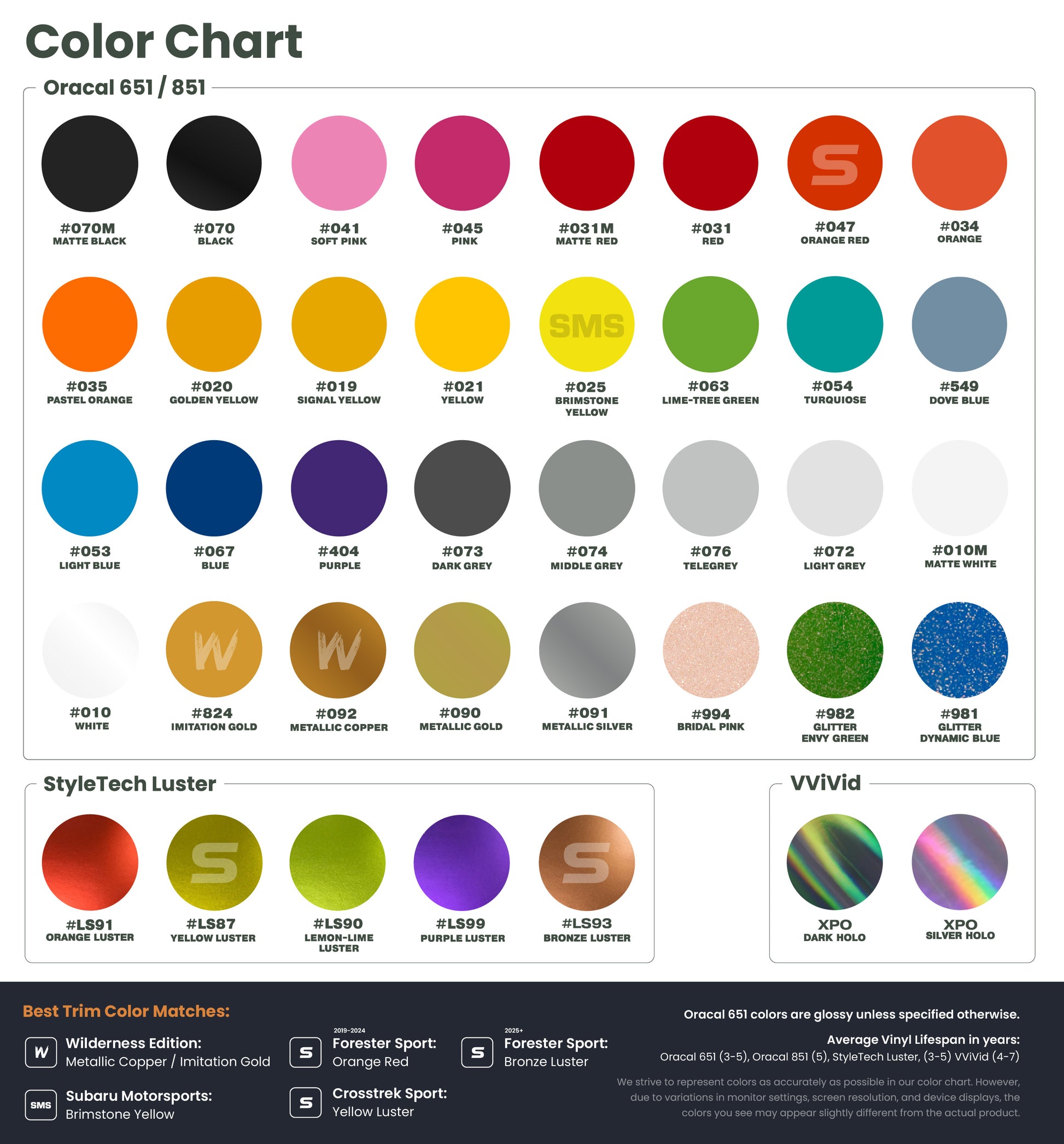 ✓ Made from Oracal 651/851, StyleTech, or VVivid Automotive-grade Vinyl
