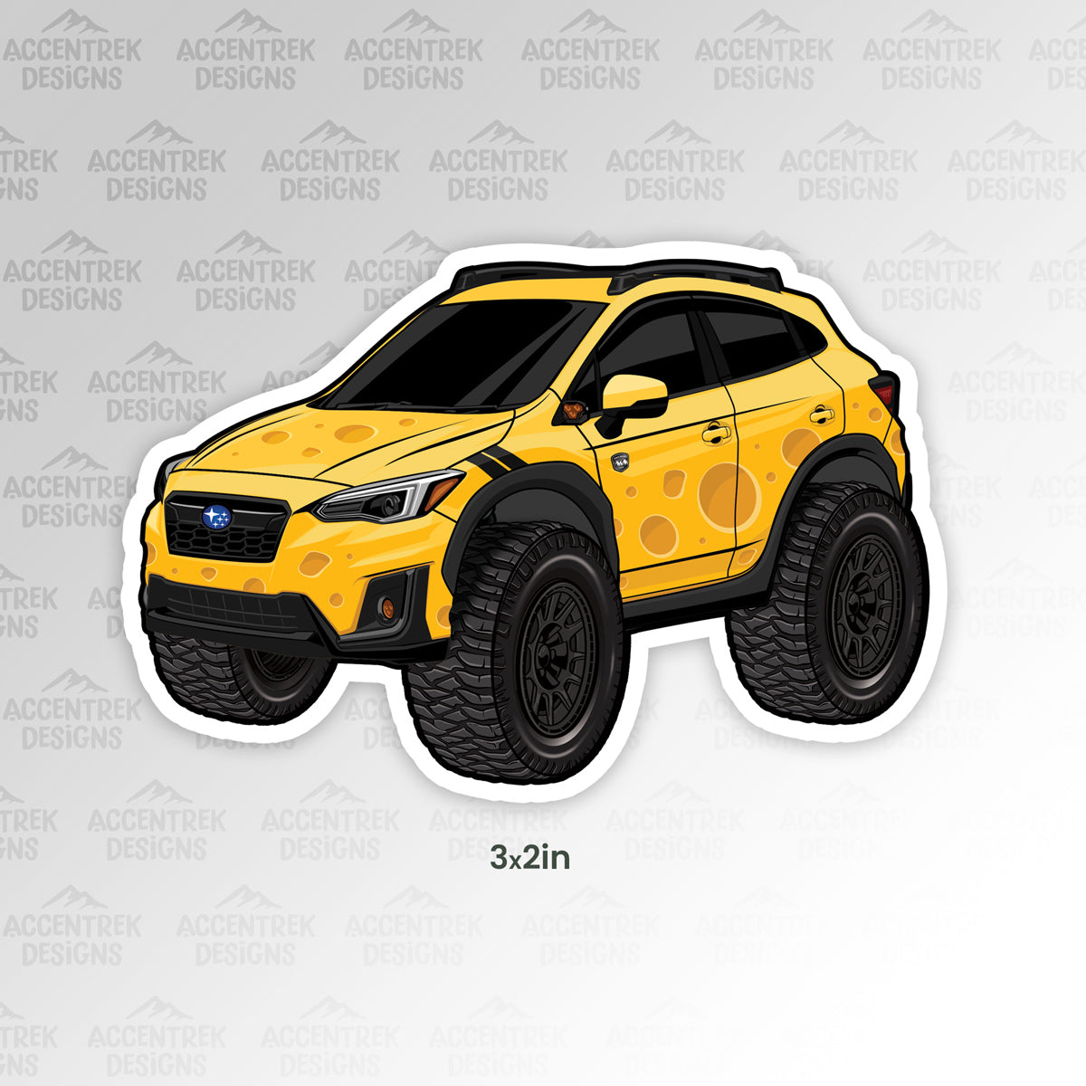 Show off your Wisconsin pride and offroad spirit with this "Cheesetrek" edition Gen 2 Crosstrek cartoon sticker! At 3" of pure cheesy charm, it's the perfect way to rep your rugged ride.