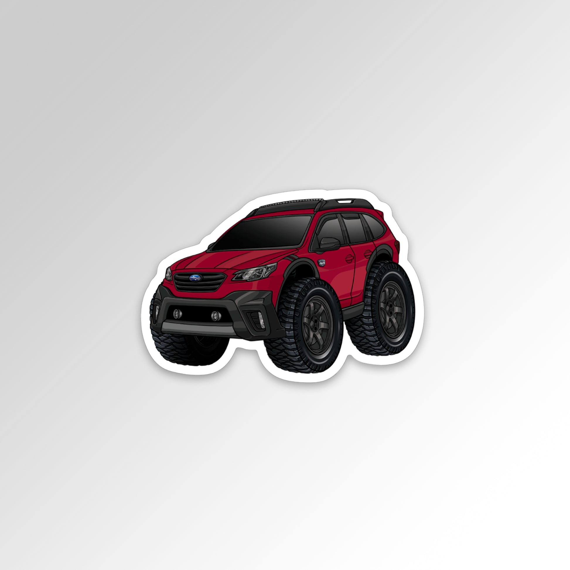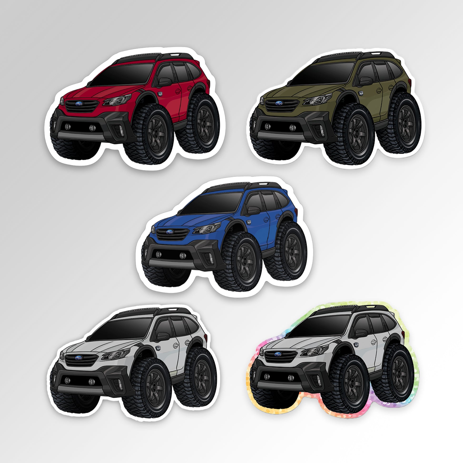 Designed from a dream, this 3" Overland Edition Subaru sticker is trail-rated, featuring giant offroad tires, extreme ground clearance, and sporty fender stripes. This little baddy is a great addition to any sticker collection..